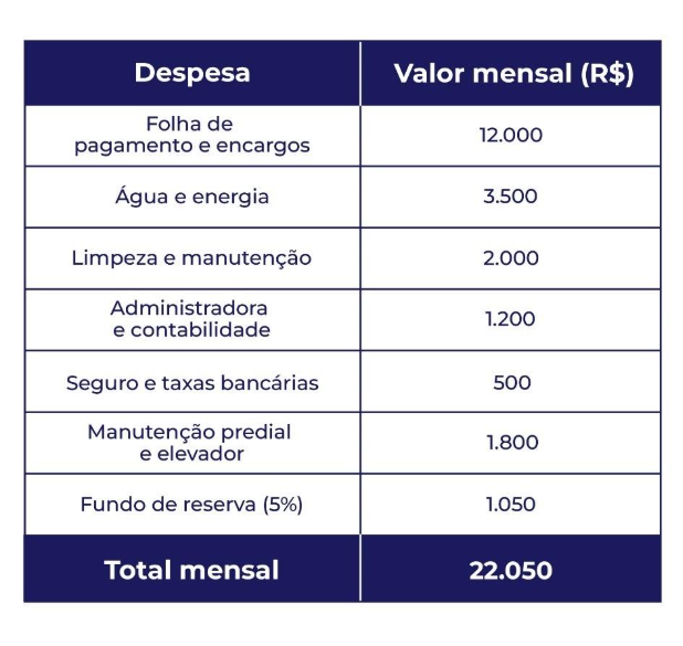 São os custos recorrentes e necessários para o funcionamento do condomínio.